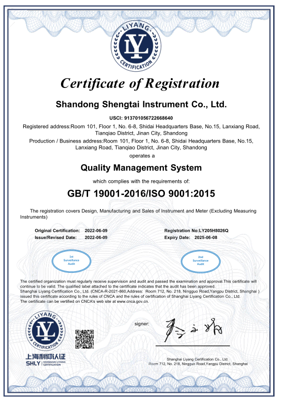 Good news! Congratulations to Shandong Shengtai instrument for successfully passing iso9001:2015 certification