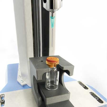 與小瓶相關(guān)的最終強(qiáng)度測試涉及表征皮下注射針頭穿過彈性密封件所需的力。穿透性試驗在USP 381并規(guī)定描述膠塞應(yīng)該允許針通過為10N使藥物能夠容易地施用,并且針沒有損壞或通過過大的力變鈍通過。