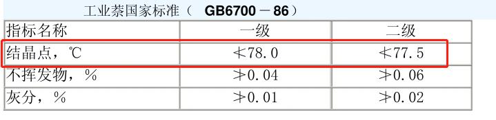 工業(yè)萘的國家標準中結(jié)晶點要求溫度多少?