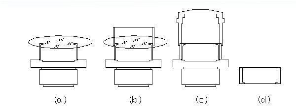 3.用壓蓋壓在外環(huán)上壓到底,見(jiàn)圖4(c);
