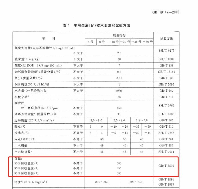 車用柴油標(biāo)準(zhǔn)GB19147 中要求的餾程試驗(yàn)方法及要求