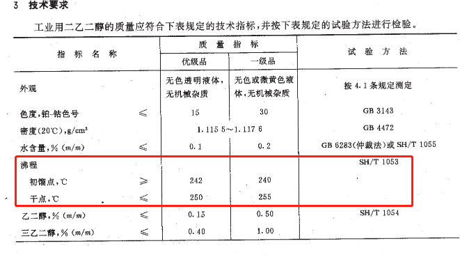 工業(yè)用二乙二醇沸程的檢測方法及標(biāo)準(zhǔn)要求值是多少?