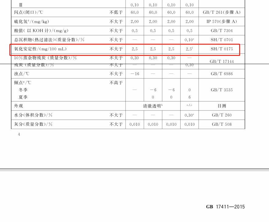 按照標(biāo)準(zhǔn)GB17411(船舶燃料油)的標(biāo)準(zhǔn)要求,檢測(cè)氧化安定性的方法是采用的SH/T0175這個(gè)標(biāo)準(zhǔn)來(lái)檢測(cè)的。