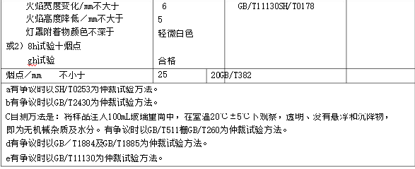 煤油的質(zhì)量要求